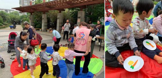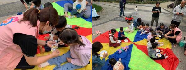 在戶外開展親子活動需要動靜結(jié)合,在舞蹈環(huán)節(jié)結(jié)束后,老師讓孩子們原地坐下,給孩子們讀起了繪本《早餐,你喜歡吃什么?》。沉浸在故事的海洋里,孩子們隨著老師的話語開始想象豐盛的早餐,柳老師拿出了紙盤子和橡皮泥,孩子們用彩色的橡皮泥在紙盤上制作胡蘿卜、荷包蛋。做好后,孩子們興高采烈地向同伴展示自己的成品,本次兒童讀書會活動也落下了帷幕。