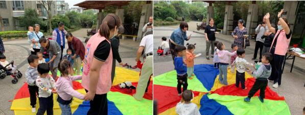 本次活動邀請了全國職業(yè)認(rèn)證中心閱讀規(guī)劃師、繪本館館長柳絮老師帶領(lǐng)孩子們一起讀書。活動開始,孩子們先進(jìn)行了自我介紹,在熱身游戲之后,孩子們之間逐漸熟悉起來。在鋪著彩虹傘的地面,孩子們跟著老師“開火車”,一個接著一個,每個孩子的臉上都洋溢著歡樂的笑容。隨后,一陣悅耳的音樂響起,柳老師又帶著孩子們一起跳舞,孩子們努力地跟上老師的動作,小手搖擺著、揮舞著。