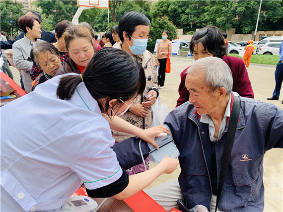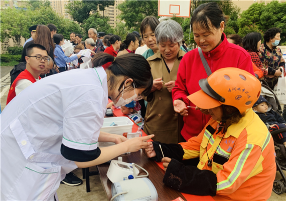 上午十點,前來排隊的居民絡(luò)繹不絕,有的帶著家中的血壓計前來檢定是否準確,有的帶著眼鏡準備清洗,有的準備測量血糖血壓。吳師傅帶上清洗后的眼鏡看了一會,點點頭:“是感覺清晰了”,方阿姨拿著檢定過的血壓計高興地說:“這個血壓計買了好幾年了,前段時間量血壓老擔心不準,這回放心了!”那邊,醫(yī)務(wù)人員耐心叮囑:“從您的血壓和血糖結(jié)果來看,需要注意飲食和鍛煉,少吃甜食,注意葷素搭配。”
