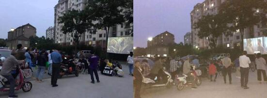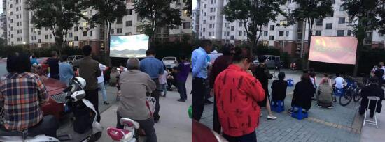 為了將黨史學(xué)習(xí)教育深入開展,深入民心。5月21日晚夜幕剛剛降臨,江寧區(qū)東山街道邵圣社區(qū)金竹花園內(nèi)人頭攢動(dòng)、熱鬧非凡。工作人員正在擺弄碩大的銀幕準(zhǔn)備試機(jī)、調(diào)試音響。居民們?nèi)蝗?、倆一伙,陸續(xù)來到廣場(chǎng),有的居民還把孩子帶來一塊兒觀看露天電影。
