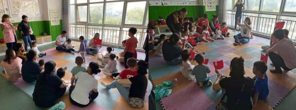 本次活動共吸引了轄區(qū)十余組家庭到場參與,老師先給家長講課堂秩序,避免影響寶寶的專注力。隨后,老師給家長及幼兒講述了黨的名字、黨的生日、黨徽、黨旗、黨員、黨的領(lǐng)導(dǎo)人等黨的基本知識,在孩子心中播撒紅色的種子。接著,老師又給大家講起了紅色經(jīng)典故事,帶領(lǐng)幼兒了解全國各族人民從積貧羸弱的舊中國披荊斬棘一路走來的光輝歷程,銘記紅色歷史,傳承紅色基因。隨著一陣激昂的旋律響起,孩子們一起學(xué)習(xí)紅歌《我們是共產(chǎn)主義接班人》。在百年黨史劃小船游戲中,孩子們一起鉆山洞、運小杯,追憶紅船歷史。老師準備了紅紙、黨徽圖案、吸管、雙面膠等材料,讓家長帶著孩子們一起制作黨旗,孩子們舉著黨旗齊唱《我是中國好寶寶》,稚嫩的童音唱出了對祖國美好未來的祝福。
