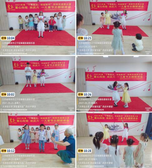 早早的,小朋友就由家長(zhǎng)領(lǐng)著,陸陸續(xù)續(xù)來到社區(qū)新時(shí)代文明實(shí)踐站,在志愿者們的引導(dǎo)下,測(cè)體溫、簽到。小朋友驚喜的看到有志愿者給小朋友現(xiàn)場(chǎng)制作棉花糖。小朋友手拿棉花糖,由志愿者帶領(lǐng)著排隊(duì)到活動(dòng)室做熱身自我介紹。今天的活動(dòng)分三部分,第一場(chǎng)是“頂娃娃”游戲:在志愿者們的帶領(lǐng)下,親子家庭頭碰頭頂著一個(gè)布娃娃,學(xué)螃蟹走,橫著從起點(diǎn)走到終點(diǎn)。家長(zhǎng)小朋友手牽手,頭碰頭,一組組開心愉悅的走過,現(xiàn)場(chǎng)一片歡聲笑語,熱鬧非凡;接下來,志愿者又帶著小朋友來到猜謎語區(qū)域,邀請(qǐng)小朋友比試猜謎語。小朋友在家長(zhǎng)和志愿者的一點(diǎn)一點(diǎn)的提示下,終于猜對(duì)了,拿到獎(jiǎng)品后,小朋友開心不已;10點(diǎn)左右,信心滿滿的小朋友們都圍坐在觀眾席等待著今天的精彩部分--六·一兒童節(jié)節(jié)目大匯演。在主持人的報(bào)幕聲中,首先出場(chǎng)的是朗誦《世上的孩子有多少》的小朋友們,個(gè)個(gè)打扮的美美,在臺(tái)上聲情并茂的朗誦著,每一字每一句都誦出了兒童們的朝氣蓬勃。接下來的合唱《聽我說聲謝謝您》小朋友們長(zhǎng)出了對(duì)社區(qū)、志愿者們的感恩之情。接下來舞蹈《咖喱咖喱》、英文歌曲《WALKING WALKING》、《器械操》,還有朗誦《做最好的自己》等等,伴隨著優(yōu)美的音樂節(jié)奏,孩子們一起邊唱邊舞,一個(gè)個(gè)節(jié)目,精彩無比,美輪美奐,讓人目不暇接,臺(tái)下喝彩聲、掌聲不斷。最后隨著《童心向黨》的音樂,把整個(gè)今天的活動(dòng)推向一個(gè)高潮。
