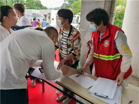 “大家不要著急,請有序排好隊(duì)。”“請接種疫苗的人,在這里領(lǐng)取健康填寫申報(bào)表,寫好后交給我們的工作人員。”6月3日下午,南京市棲霞區(qū)棲霞街道攝山村兩委班子成員在棲霞社區(qū)衛(wèi)生服務(wù)中心新冠疫苗接種點(diǎn)現(xiàn)場,靠前做好服務(wù)保障,引導(dǎo)群眾有序進(jìn)行疫苗接種。