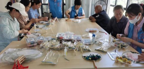 活動(dòng)中,手工老師首先向大家介紹了團(tuán)扇的發(fā)展歷史,講解團(tuán)扇的制作方法。在場(chǎng)的殘疾人們認(rèn)真聆聽(tīng),及時(shí)將團(tuán)扇的制作步驟記錄下來(lái)。對(duì)于講解中存在疑惑的地方及時(shí)舉手詢問(wèn),現(xiàn)場(chǎng)的手工老師耐心解答,確保所有人對(duì)于團(tuán)扇的制作流程有了基本的概念后,手工老師帶領(lǐng)殘疾人進(jìn)行團(tuán)扇的手工制作。在老師細(xì)心指導(dǎo)下,細(xì)細(xì)構(gòu)圖,幾片葉子,數(shù)朵干花,細(xì)心粘貼,經(jīng)過(guò)一個(gè)多小時(shí)的努力,干花、綠葉在團(tuán)扇上展現(xiàn)出它們獨(dú)特的風(fēng)采,原本空空如也的團(tuán)扇瞬間花團(tuán)錦簇,漂亮極了。團(tuán)扇的順利制作給了殘疾人們莫大的信心,他們對(duì)于自己的再就業(yè)道路充滿了希望。