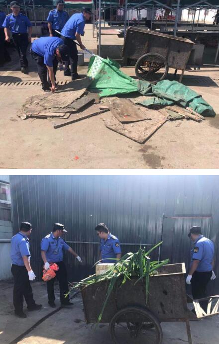 在前期農(nóng)貿(mào)市場整治的基礎上,執(zhí)法大隊聯(lián)合街道清管所,加大整治力度和頻次,對影響農(nóng)貿(mào)市場環(huán)境的“臟亂差”進行“對癥下藥”。針對環(huán)境“臟”處,采取“拉網(wǎng)式”排查整治的方式,對市場內(nèi)過道、排水口、垃圾桶附近等區(qū)域的垃圾進行清掃,全面清除衛(wèi)生死角、地面污水等,做到“全覆蓋、無死角”;針對秩序“亂”處,對影響市容觀瞻的占道經(jīng)營、亂堆亂放等違章現(xiàn)象,做到發(fā)現(xiàn)一處、治理一處;針對管理“差”處,繼續(xù)采取專項整治和不定期“回頭看”相結(jié)合,延時執(zhí)法和錯時執(zhí)法相結(jié)合等方式,不斷強化常態(tài)化巡查,建立長效化管理機制,推動管理時段無縫隙。截至目前,共整治農(nóng)貿(mào)市場約15次,出動人員100余人次,整治占道經(jīng)營、亂堆亂放、非機動車亂停亂放等250余處,清理暴露垃圾、衛(wèi)生死角70余處,約6噸,有效改善了農(nóng)貿(mào)市場環(huán)境衛(wèi)生。