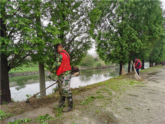 連日來,東山河堤上機器轟鳴,除草工作有條不紊。6位黨員志愿者身著綠色迷彩外衣,頭戴護(hù)目鏡,架著割草機,動作嫻熟,割草效率極高。志愿者們形成一條戰(zhàn)線,齊頭并進(jìn),雜草一排排倒下。戰(zhàn)線推進(jìn)過的地方?jīng)芪挤置?,留下一片整整齊齊的坡面,賞心悅目。干凈整齊的背后是他們頂著烈日,冒著細(xì)雨,苦干實干的結(jié)果,以實際行動詮釋了“我為群眾辦實事”實踐活動的核心精神。