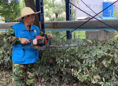 當天,志愿者們使用割草機等設(shè)備,在江邊大道綠化帶內(nèi),對雜草與樹枝,一點點推進作業(yè)。城市道路綠化帶,是整個道路系統(tǒng)重要組成部分,雜草叢生的情況,將嚴重影響道路整潔與城市形象。