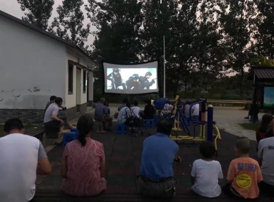 6月11日晚,南京市江寧區(qū)江寧街道西寧村在張莊村播放紅色電影-紅海行動(dòng)。