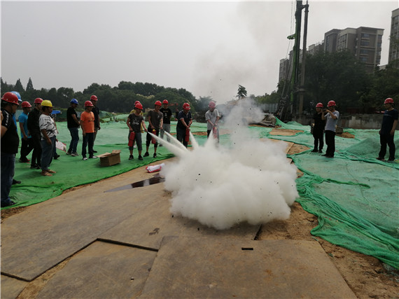 當(dāng)天上午九點(diǎn),社區(qū)和項(xiàng)目單位工作人員在現(xiàn)場(chǎng)懸掛橫幅,張貼宣傳海報(bào),并安置演練物品。接著,全體人員集合,由項(xiàng)目經(jīng)理作活動(dòng)動(dòng)員講話,介紹活動(dòng)流程和注意事項(xiàng)。然后,工作人員們?cè)诎踩珕T介紹完滅火器的使用步驟之后,分組操作滅火器滅火。最后,社區(qū)工作人員向項(xiàng)目單位職工發(fā)放宣傳單頁(yè),倡導(dǎo)職工加強(qiáng)安全學(xué)習(xí),提高警惕,規(guī)范作業(yè),保護(hù)自己和工友的人身財(cái)產(chǎn)安全。