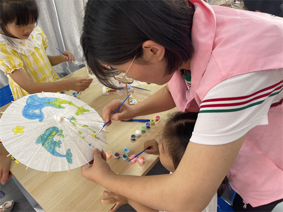 父愛(ài)是一把大傘,在風(fēng)雨交加的路上,為孩子遮風(fēng)避雨,讓孩子能夠健康、快樂(lè)、無(wú)憂(yōu)的成長(zhǎng),他們的愛(ài)偉大而又無(wú)聲。彩繪油紙傘環(huán)節(jié),小朋友們拿起彩筆,用他們獨(dú)特的表達(dá)方式在油紙傘上繪下對(duì)于父親的真情告白,也繪下從“長(zhǎng)江大保護(hù)”的莊嚴(yán)承諾。