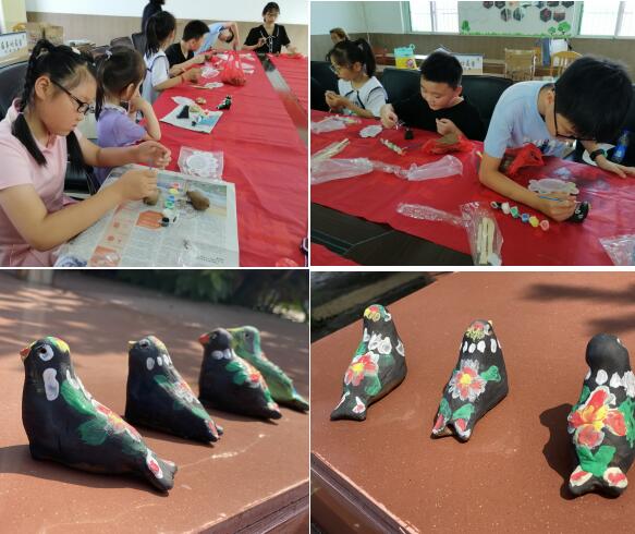 由于孩子們對“泥咕咕”這一傳統(tǒng)文化并不了解,制作前,社工先向孩子們普及了這門古老的黃河文化藝術(shù),主要從簡介、來源和風(fēng)格特征三方面展開詳細(xì)介紹。制作泥咕咕需要五個步驟:取土、和泥、捏制、窯燒和著色上彩。社工取出一塊泥,告訴孩子們?nèi)绾芜M(jìn)行捏制和塑造造型。泥咕咕的制作有些難度,捏制過程中非常考驗孩子們的耐心。孩子們并沒有被困難嚇倒,相互幫助,不懂就問,在老師的指導(dǎo)下,勾線、上色、晾干,認(rèn)真的進(jìn)行制作。不一會,一個個栩栩如生、活靈活現(xiàn)的“泥土精靈”就呈現(xiàn)在眼前。