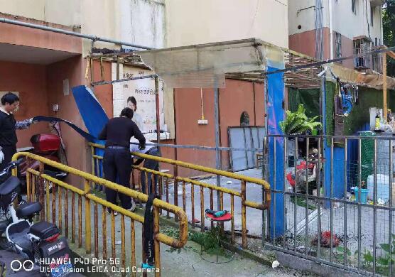 據(jù)悉,此處違建搭建于小區(qū)4棟2單元的陽(yáng)臺(tái)外,結(jié)構(gòu)為鋼架結(jié)構(gòu),由11樓住家戶搭建,主要是提供場(chǎng)地供居民打牌,貼補(bǔ)些家用。此違建除占用公共空間,影響小區(qū)環(huán)境,也影響著一樓居民的正常生活。社區(qū)也多次收到居民的12345投訴,要求取締違建。