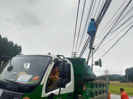 一天早上,面對紅梅線較大的車流量,一處電線意外被路過車輛扯斷。為了及時的消除安全隱患,志愿者們又第一時間趕赴現(xiàn)場,因地制宜,就地取材,及時有效的將扯斷線路固定好,消除了安全隱患。