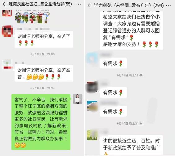 通過新政策的在線解讀,讓有婚姻登記需求的居民對(duì)該政策有了詳細(xì)的了解,并也發(fā)動(dòng)大家向身邊的朋友多多宣傳,讓有需求的居民享受到國家的政策。