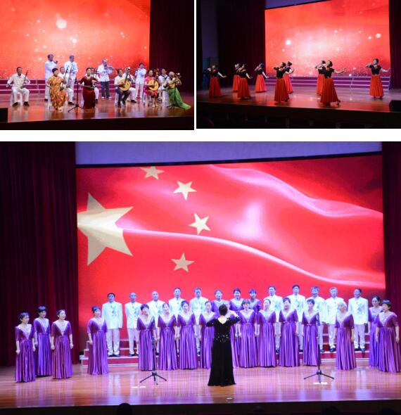 活動最后,演出人員和全場觀眾一起起立高唱《沒有共產(chǎn)黨就沒有新中國》,在嘹亮的歌聲中結(jié)束了整場演出。