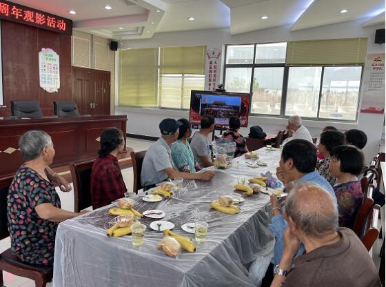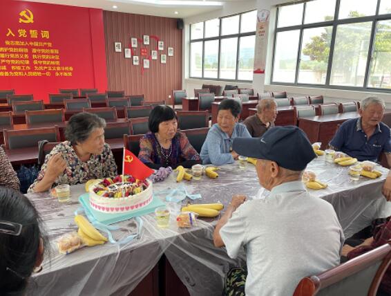 當(dāng)天,村黨群服務(wù)中心內(nèi),老人們聚在一起,慶祝中國(guó)共產(chǎn)黨成立100周年,為黨過(guò)起了生日,大家吃著蛋糕,聊著家?,嵤?,現(xiàn)場(chǎng)互動(dòng)連連。