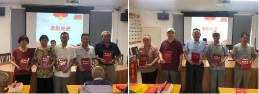接著,為社區(qū)黨齡在50年老黨員頒發(fā)了“光榮在黨50年”紀念章,并對老黨員們多年在組織工作中所作出的貢獻表達了崇高敬意。當沉甸甸的紀念章,遞到老黨員面前時,老黨員激動的表示:“這是對我們一種肯定,也是一種贊揚,更是一種榮譽。”在臺下,老黨員高興的拿著紀念章,看來看去,神情十分激動。