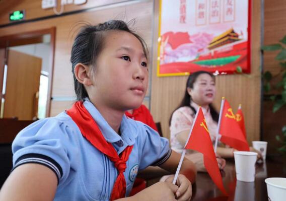 現(xiàn)場,關(guān)工委工作人員組織孩子們走進龍尚村黨群服務(wù)中心,觀看了慶祝大會。孩子們手中拿著黨旗,認(rèn)真觀看著屏幕上的直播典禮,聆聽著習(xí)近平總書記的重要講話。