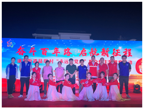 為慶祝中國(guó)共產(chǎn)黨成立100周年,引導(dǎo)廣大黨員、群眾堅(jiān)定理想信念,增進(jìn)愛黨愛國(guó)情懷,6月30日,江寧區(qū)湖熟街道晶明村開展“永遠(yuǎn)跟黨走” 群眾性主題教育暨慶祝中國(guó)共產(chǎn)黨成立100周年文藝匯演。晶明村通過網(wǎng)格化管理,強(qiáng)化責(zé)任,助力文藝匯演順利進(jìn)行。