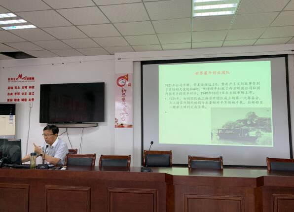 “1921年公司注冊,資本金接近于0,靠共產(chǎn)主義的故事拿到了蘇聯(lián)的天使輪和A輪,歷經(jīng)艱辛打敗了西方跨國公司和國內(nèi)強有力的競爭對手,1949年10月1日在主板市場上市……”黨課上,俞有利從百年苦難和百年輝煌兩大部分講解著黨的百年奮斗史。把中國共產(chǎn)黨稱為“世界最牛創(chuàng)業(yè)團隊”,從“完成注冊”到“順利上市”,詼諧的語言贏得在場黨員的陣陣掌聲。