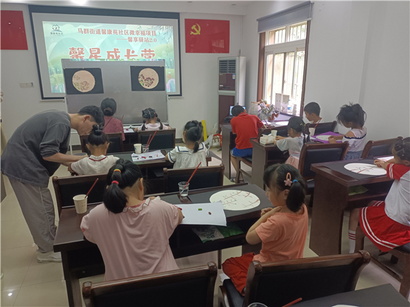 7月6日上午,南京市棲霞區(qū)馬群街道馨康苑暑期夏令營在社區(qū)二樓活動室火熱開營,并迎來第一堂課“特色美術(shù)課”,吸引了轄區(qū)16名小營員前來參與。