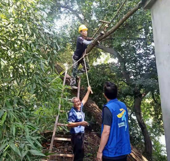 從現(xiàn)場(chǎng)情況來看,一棵老樹的樹枝倒在了耿明太家房屋上,房屋的瓦也碎了幾塊。并且這根樹枝還挺粗壯,可能與這幾日大風(fēng)暴雨天氣有關(guān),如果再不處理,可能會(huì)有更多安全隱患。于是,劉庭便找到了網(wǎng)格內(nèi)有過一定鋸樹經(jīng)驗(yàn)的村民耿德財(cái)來幫忙,耿德財(cái)一口就答應(yīng)了下來。7月9日上午,耿德財(cái)在另一位村民的幫助下順利解決了這件事。“感謝網(wǎng)格員幫我們及時(shí)解決了這件事,要不是這樣,我和老伴上了年紀(jì)都不知道怎么辦了。”