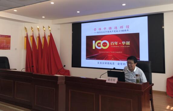 隨后,區(qū)委宣講團(tuán)俞有利教授為大家開展了黨史學(xué)習(xí)專題黨課。俞教授以《苦難中鑄造輝煌》為主題,從“百年苦難”和“百年輝煌”兩個方面帶黨員深入了解了中國共產(chǎn)黨成立100年來,中國人民艱苦奮斗、奮發(fā)進(jìn)取所取得的輝煌成就。俞教授的黨課,內(nèi)容豐富、理論性強(qiáng)、講解生動、貼近實(shí)際,使黨員們在賡續(xù)紅色精神血脈中涵養(yǎng)了高尚的黨性情懷。