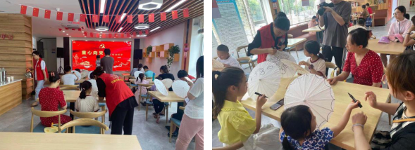 活動(dòng)現(xiàn)場(chǎng),志愿者貼心的為大家準(zhǔn)備好了活動(dòng)所需的材料,油紙傘、顏料筆、顏料盤。活動(dòng)以“巧手變美圖”開始,家長(zhǎng)與孩子一同將相同的空白圖案進(jìn)行填充變成其他的圖案。每個(gè)孩子心中都有一個(gè)創(chuàng)造力精靈,孩子們自由發(fā)揮,盡情想象,利用各種色彩搭配,將紙傘裝飾得五彩繽紛。經(jīng)過(guò)1個(gè)小時(shí)的創(chuàng)作之后,各式各樣的油紙傘印入眼前。經(jīng)過(guò)家長(zhǎng)與孩子之間配合,一把把美麗、獨(dú)特且富有創(chuàng)意的油紙傘呈現(xiàn)在了大家的面前。完成的家庭紛紛拿起自己的作品進(jìn)行拍照留念并向大家分享了自己感受和收獲。