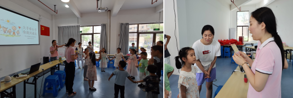 雖然天氣炎熱,孩子們和家長都早早的來到活動室。志愿者們?yōu)槲∨笥褌兊淖⒁饬?,首先帶領(lǐng)小朋友跳了熱身操。隨后,開展了“擊鼓傳花”“畫鼻子”“桃花朵朵開”等破冰小游戲。接著,志愿者們拿出精心準(zhǔn)備的空白圓紙、五彩繽紛的畫筆和各式各樣的吸管,孩子們在志愿者和家長的的指導(dǎo)下,充分發(fā)揮想象力,不一會兒,一幅幅美麗的扇子畫在孩子們的筆下形成了,整個活動現(xiàn)場彌漫著濃厚的創(chuàng)作熱情和小朋友們歡快的笑聲。
