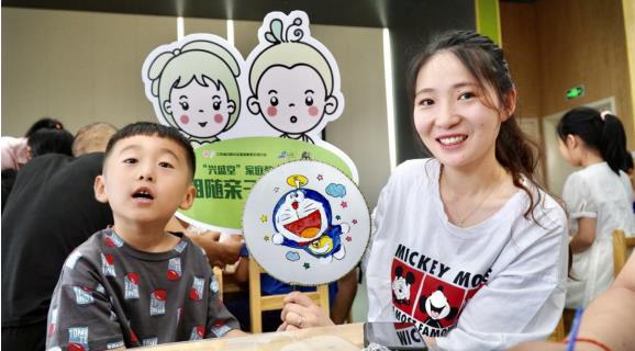 “1987年7月11日,前南斯拉夫的一個嬰兒降生,被聯(lián)合國象征性地認定為是地球上第50億個人,并宣布地球人口突破50億大關(guān)......”現(xiàn)場,志愿者首先向小朋友們介紹世界人口日的由來。隨后,志愿者分發(fā)手工制作的扇面,在家長們的指導(dǎo)和幫扶下,小朋友們在勾勒好線條的扇面上按照自己的審美和喜好,將一幅幅等待填充的作品上色增彩。他們有的為動畫片中的主角哆啦A夢上色,有的則為一幅夏日荷花圖上色,還有的為小美人魚上色......