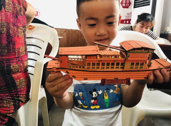 木質(zhì)船板散發(fā)著淡淡木香,古樸莊重,一看就是縮小版的“南湖紅船”。 “紅船精神”既是一種信仰,也是一種精神寄托。接下來的手工制作環(huán)節(jié),孩子們用手工造船的方式回顧黨的百年奮斗史,汲取黨的精神力量。隨后,小朋友們紛紛開始進行手工制作。志愿者耐心指導(dǎo),孩子們相互合作,拼裝、粘貼……大家以“紅船”為原型,努力將一塊塊“零件”組裝起來,不一會兒一艘艘紅船便呈現(xiàn)在大家面前。