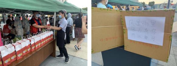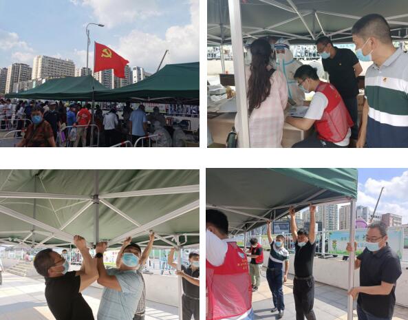 “只要還有一個(gè)居民在排隊(duì),不管多晚決不撤離!”在檢測(cè)過程中,大家前赴后繼,每三個(gè)小時(shí)輪流上崗,分組引導(dǎo)群眾進(jìn)行登記和引導(dǎo)核檢,引導(dǎo)大家分批次、分時(shí)段有序檢測(cè)。此外,由于高溫天氣,大家穿著厚重防護(hù)服,不一會(huì)就汗水濕透全身,但在“高強(qiáng)度作戰(zhàn)”下無一人退縮。累了,就在附近找一處陰涼地躺下歇上幾分鐘。社區(qū)還為醫(yī)護(hù)人員、居民、工作人員準(zhǔn)備了人丹、風(fēng)油精、防蚊花露水等“消暑用品”,讓群眾感受到暖暖的東山“志愿紅”。