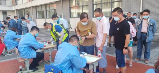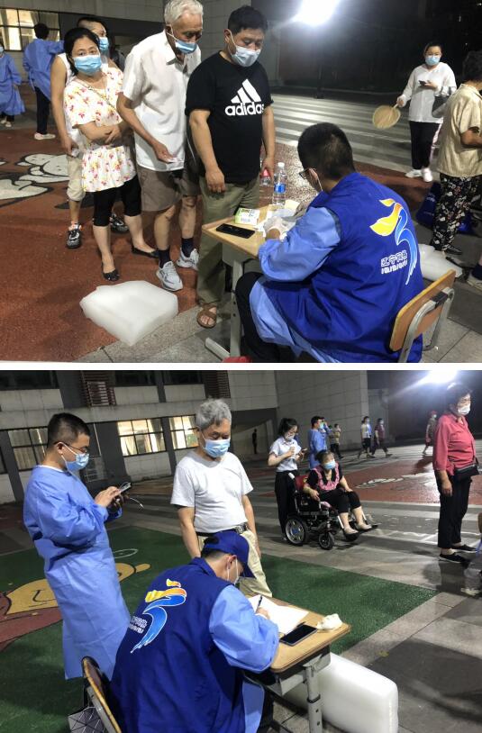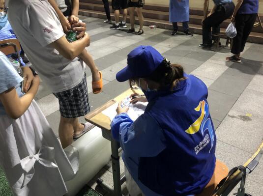 網(wǎng)格員們分工協(xié)助,配合默契,為了盡快額完成采樣工作,每一個司家社區(qū)網(wǎng)格員都沒有顧上吃午飯,悶熱的天氣,網(wǎng)格員穿著厚重的防護服,汗水早已浸透衣服,但他們依舊認真的對待居民、細致、耐心的進行登記和引導(dǎo)工作。一直持續(xù)到深夜1點采樣和現(xiàn)場清潔才結(jié)束。