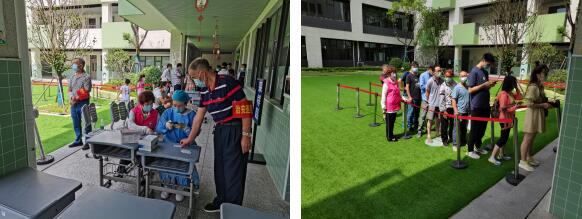 自7月21日起,南京市啟動(dòng)全員核酸檢測。棲霞街道華僑城小學(xué)檢測點(diǎn)隨處可見穿著“紅馬甲”服裝的志愿者忙碌的身影,他們是江南廠社區(qū)巾幗志愿者服務(wù)隊(duì)。