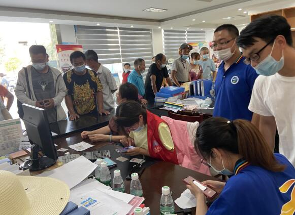 登記信息、協(xié)調(diào)現(xiàn)場(chǎng)秩序、帶隊(duì)入場(chǎng)檢測(cè)……在核酸檢測(cè)現(xiàn)場(chǎng),社區(qū)網(wǎng)格員與志愿者們互相配合,穿梭于長(zhǎng)長(zhǎng)的隊(duì)伍之間,進(jìn)行著一系列緊張而有序的工作。由于天氣炎熱,前來(lái)采樣的人數(shù)眾多,為了避免村民們中暑,網(wǎng)格員們便盡量安排村民進(jìn)入室內(nèi)或者樹(shù)蔭下等待,并為村民們分發(fā)了礦泉水、人丹等物資,以防村民們?cè)谘谉岬奶鞖饫镏惺睢?/p>