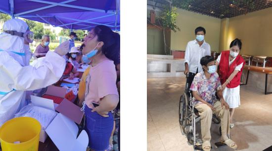 社區(qū)工作者,網(wǎng)格員,志愿者在檢測點24小時隨時待命耐心疏解,采樣的同時,還為村民講解核酸檢測的重要性和個人防護注意事項,針對殘疾人,年紀大出行不便的老人醫(yī)護工作者入戶上門檢測采集。