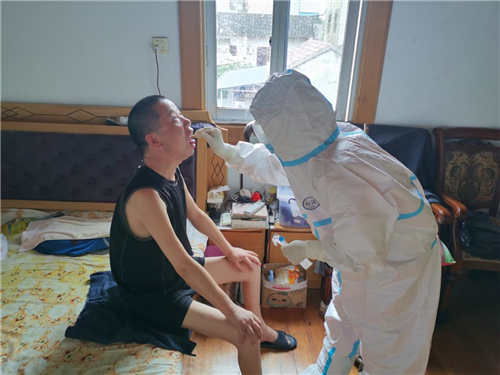 “你好,我們是上門進(jìn)行核酸檢測的。”為確保全員核酸檢測應(yīng)檢盡檢、愿檢盡檢、不漏一人、不漏一戶,網(wǎng)格員、村委會(huì)干部、醫(yī)護(hù)人員主動(dòng)上門為轄區(qū)內(nèi)的“五包一”人員進(jìn)行核酸檢測,登記人員信息、撕開棉簽包裝、指導(dǎo)村民張大嘴巴......核酸檢測中,醫(yī)護(hù)人員認(rèn)真幫助村民進(jìn)行檢測,網(wǎng)格員、村委會(huì)干部耐心做好溝通和安撫工作,通過交流及時(shí)了解他們的身體健康狀況,切實(shí)做到“早發(fā)現(xiàn)、早報(bào)告、早診斷、早隔離、早治療”。