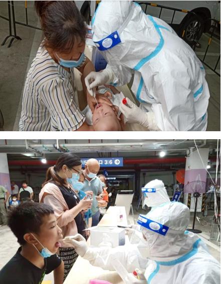 “寶寶,來,張開嘴,檢測(cè)很快就好了”,醫(yī)護(hù)人員正在耐心有序地為居民采集咽拭子,網(wǎng)格員負(fù)責(zé)按照流程做好登記工作,等待檢測(cè)的市民攜帶有效身份證件依次排隊(duì)。