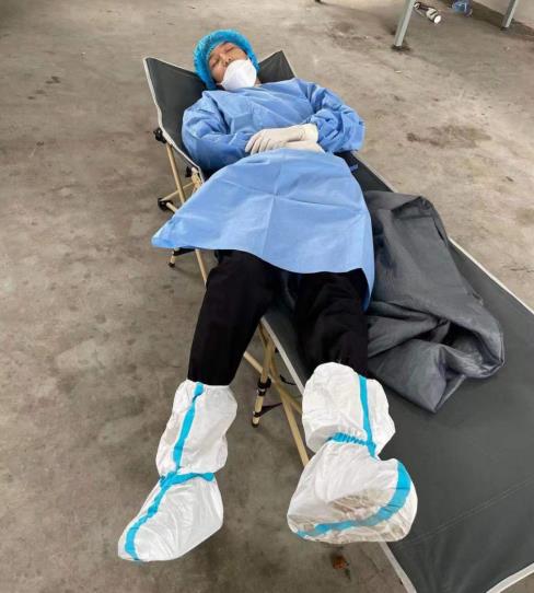 根據(jù)疫情防控需要,在一線工作的人員必須穿上防護(hù)服,帶上防護(hù)口罩,一天工作下來,時(shí)浩的雙手都被汗水泡白,從第一次核酸檢測到第三次核酸檢測,時(shí)浩用行動踐行著網(wǎng)格力量。“由于實(shí)在是太累,中午躺在椅子上一會就睡著了。”時(shí)浩表示,時(shí)間緊迫,只能睡一會就又要起來繼續(xù)協(xié)助核酸檢測工作。
