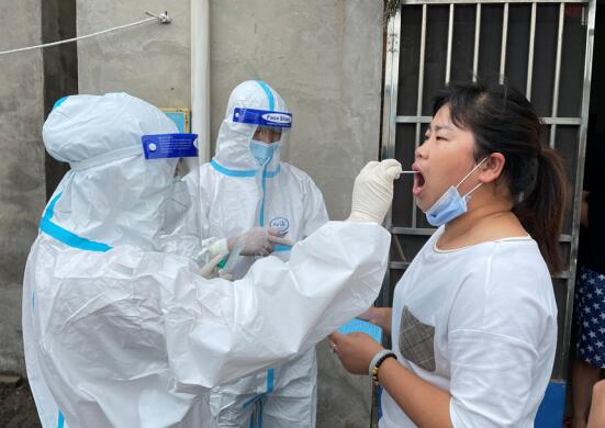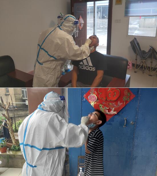 每次核酸檢測前,醫(yī)護人員都要嚴(yán)密做好防護工作,防護服、手套、防護面罩、口罩每一個環(huán)節(jié)一絲不茍,給了居家隔離人員慢慢的安全感。在進行核酸檢測時,醫(yī)護人員還會用言語安撫、鼓勵居家隔離人員,“沒事的啊,只要你之前做好了防護工作,被感染的概率還是很低的。”在居家隔離人員的眼中,每一次來給自己做核酸檢測的“大白”送來了沉甸甸的溫暖。“說不恐慌那是假的,但是只要你們在,我就會安心很多。”一位居家隔離人員對著醫(yī)護人員說著。
