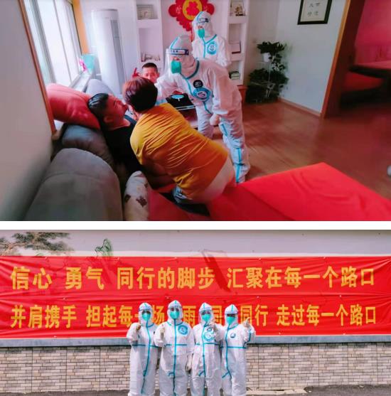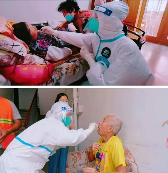 為了全面保障廣大居民的生命安全,醫(yī)護(hù)人員以及社區(qū)工作人員全部穿上厚厚的防護(hù)服進(jìn)入居民家中。每到一位殘疾人家中,醫(yī)護(hù)人員都會對他們進(jìn)行詳細(xì)的信息登記,一邊耐心安撫,一邊小心、迅速地完成采樣,手法嫻熟,盡量減少殘疾人群體的不適感,讓他們感到耐心又舒心。當(dāng)工作人員脫下防護(hù)服時,渾身都被汗水浸濕,顧不上休息,就又抓緊時間趕往下一家進(jìn)行核酸檢測。