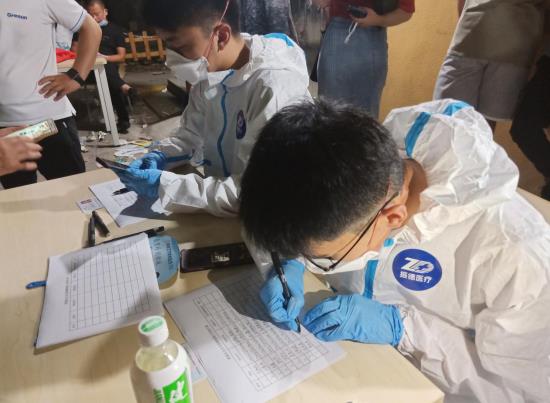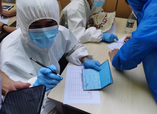 炎炎夏日,他穿著厚厚的防護(hù)服、戴著口罩在戶(hù)外引導(dǎo)居民有序排隊(duì)、登記身份信息,流汗、手套戴的手捂的發(fā)白了,他也不在意,手寫(xiě)酸了,也只是暫時(shí)停下幾秒鐘,緩一緩又投入其中。