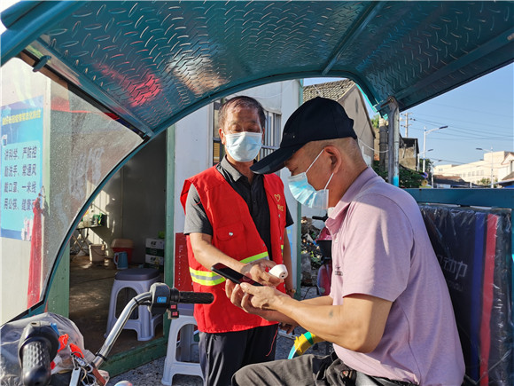 “您好,請出示您的‘蘇康碼’。”69歲老黨員周忠文遠(yuǎn)遠(yuǎn)地就提醒行人打開“蘇康碼”,同時(shí)測量體溫才可以通過。一個(gè)黨員就是一面旗幟,在疫情發(fā)生后,老黨員主動請纓,擔(dān)起值守卡口的工作,“雖然年紀(jì)大了,但作為一名老黨員,我更要為疫情防控工作奉獻(xiàn)一份力量!”