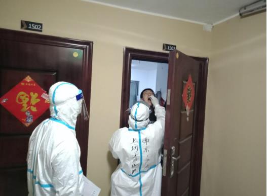 季麗麗上門為居家健康檢測人員做核酸檢測