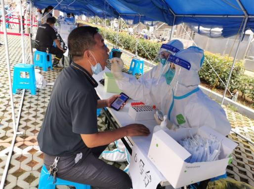 在上坊新城檢測點,來得最早走得最遲的是34歲的社區(qū)黨員儲意平?,F(xiàn)場布置、物資管理、現(xiàn)場秩序維持、環(huán)境消殺……隨處都能看到他的身影,而他卻總是精力充沛。“沒事,我不累。”這是他常說的一句話。