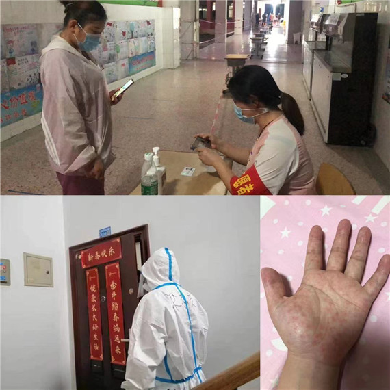 每一次的全員核酸,網格員賈亞文都要幫助前來采樣的居民掃碼,雖然聽起來很輕松,但社區(qū)常駐人口較多,同樣的動作每天就要重復幾千次,工作時,都是穿著厚厚的防護服,帶著手套,一天下來,雙手都變得通紅。