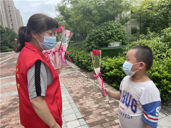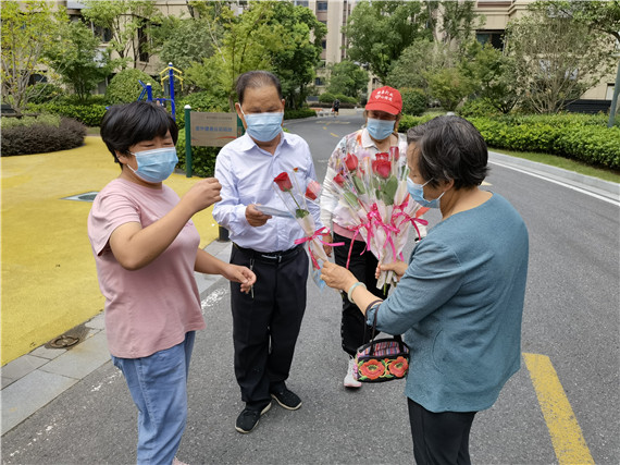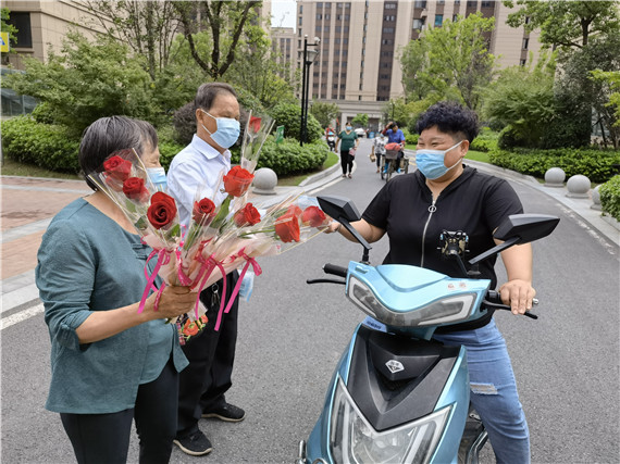 “我和老伴兒結(jié)婚已經(jīng)有43年了,每天都互相陪伴著。我聽說現(xiàn)在年輕人喜歡儀式感,特地買來了玫瑰花送給她。但是我們更想把這份“愛的小心意”傳遞下去,希望疫情趕緊過去,大家能一起甜蜜、健康。”說話的是施大爺。