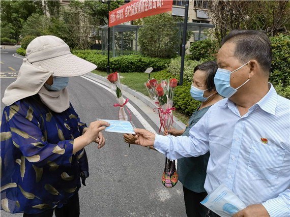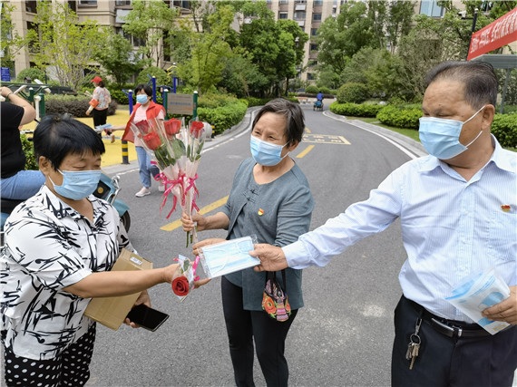 “七夕節(jié)快樂,出門要戴口罩做好防護(hù)哦!”一邊說話一邊遞口罩的是許寶林。他和他的妻子陳海霞結(jié)婚也有30年了,在中國傳統(tǒng)節(jié)日—七夕節(jié)這一天,他們買了口罩和玫瑰花,作為一點(diǎn)“小心意”,在這特殊的一天把這份美好的心意傳遞出去。夫妻二人,一人贈花一人遞口罩的畫面甚是恩愛。(通訊人:吳佳葉)