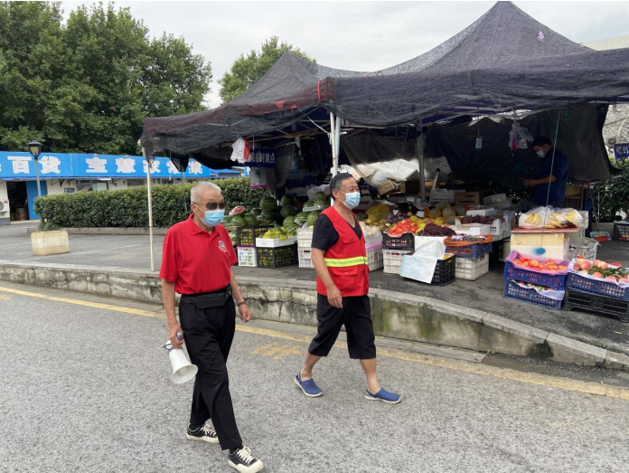 在南京市棲霞區(qū)棲霞街道棲化新村社區(qū),常常能看到一個個頭發(fā)花白的老年人戴著口罩,穿著“紅馬甲”,手里還拿著小喇叭在社區(qū)的每一條街道巡視著,他們就是棲化新村社區(qū)的老黨員們。