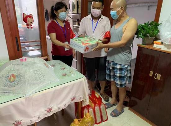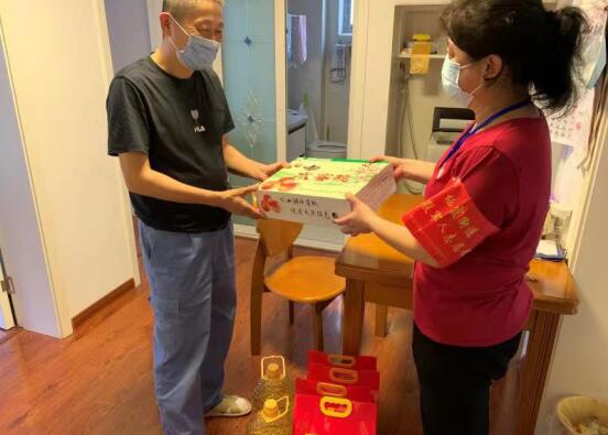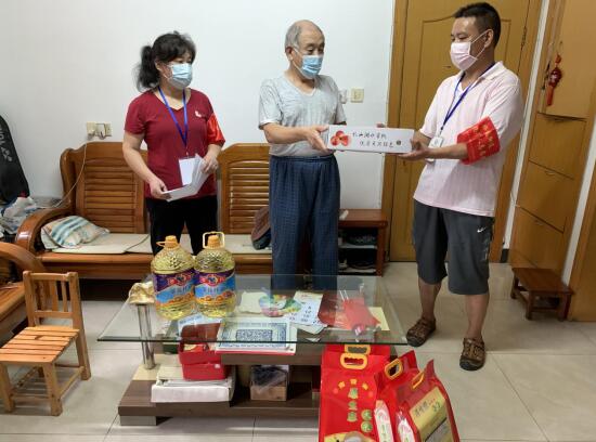 最后,工作人員們?yōu)樗麄兯蜕洗竺?、食用油以及水果等慰?wèn)品,囑咐他們保重身體。